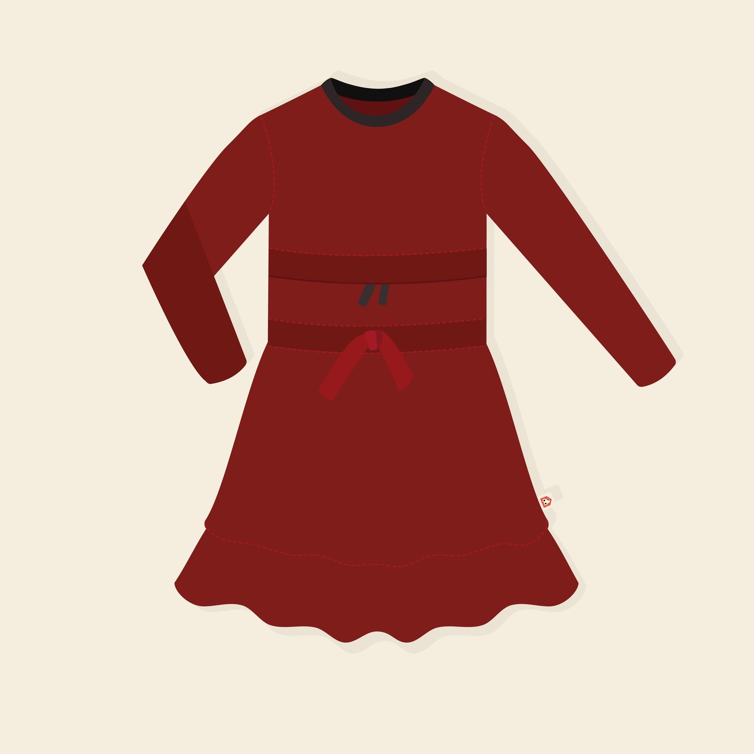 Dress BARBORA Bordo / T1d Girls Long Sleeve Dress A line Twirly / Casual Bow Tie Dress/ Cotton dress with pockets / Size 5-12 Years