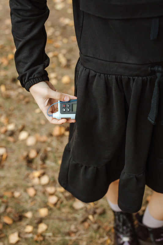 Dress EMA Black / T1d Girls Long Sleeve Dress / Casual / Cotton dress with pockets / Size 5-12 Years