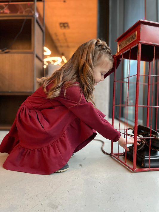 Dress EMA Bordo / T1d Girls Long Sleeve Dress / Casual / Cotton dress with pockets / Size 5-12 Years