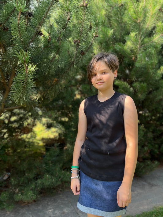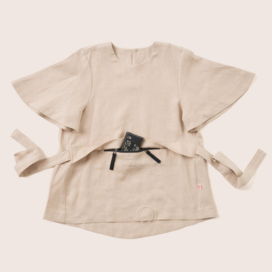 Pure linen top for girls / T1D detailed shirt / half sleeves / wide pockets / pure linen