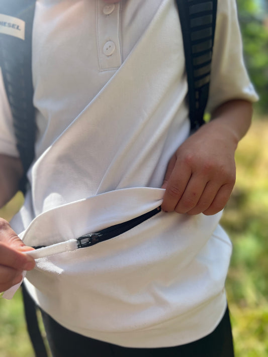 Kid's Insulin Pump-Friendly White Polo Shirt: Classic Style for Type 1 Diabetes Heroes